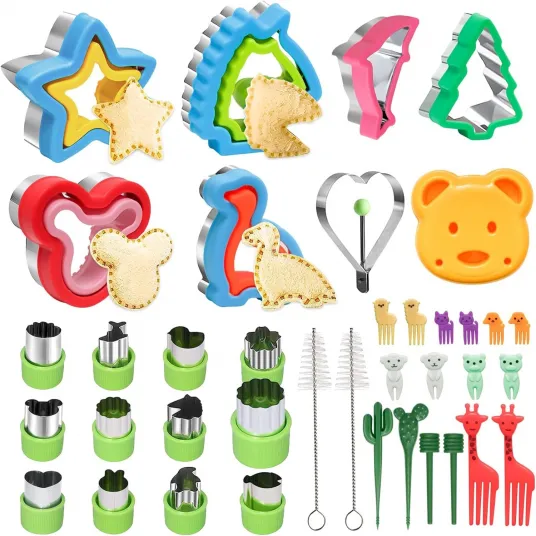 Set 38 accesorii mancare, sandvisuri forme pentru prajituri cu fructe si legume, forme diferite, JENUOS®, Inox, Multicolor