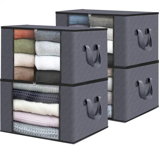Set 4 Cutie de Depozitare Pliabila Oricean®, Cu Fermoar, Textil, 15L, 60 X 40 X 35CM, Containere de Depozitare Pentru Organizarea Dormitorului, Dulapului, Imbracamintei, Cuverturii, Organizarea si Depozitarea cu Capace si Maner, Gri