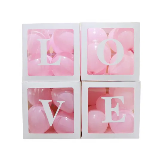Set 4 Cutii Decorative cu 100 Baloane Latex, pentru Ziua Indragostitilor/ Nunta, Koungiam, 30x30x30cm, Transparent, Model LOVESet 4 Cutii Decorative cu 100 Baloane Latex, pentru Ziua Indragostitilor/ Nunta, Koungiam, 30x30x30cm, Transparent, Model LOVE701890722701890722