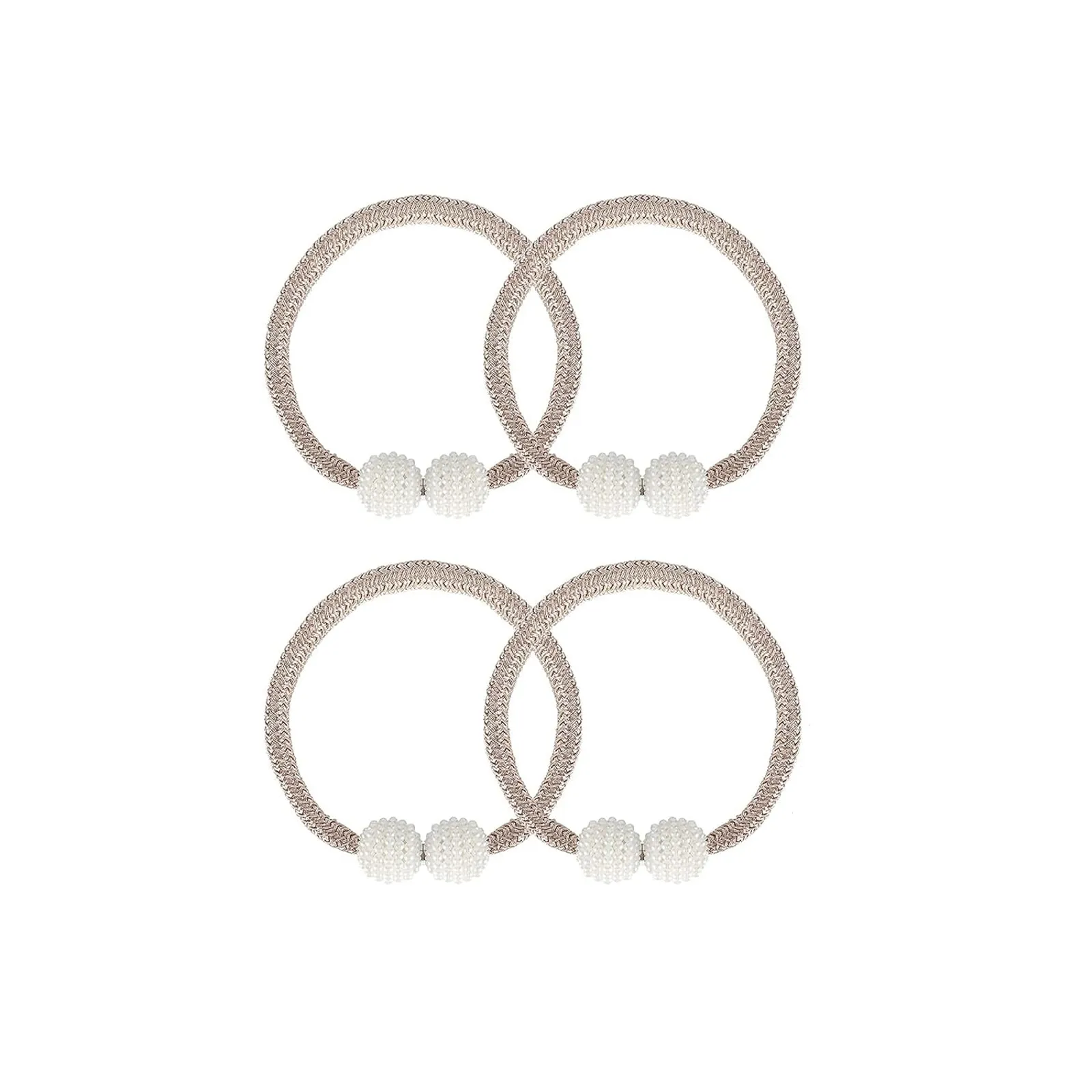 Set 4 magneti decorativi pentru perdele cu perle, NUODWELL, Usor de utilizat, Perfect pentru camera de zi, dormitor, bucatarie, sufragerie, baie si birou, Plastic/Poliester, 48 cm, Champagne