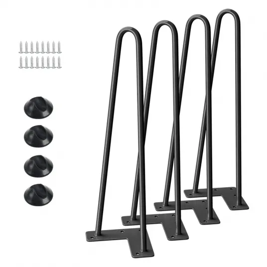 Set 4 picioare metalice pentru masa, Sundiguer, vopsite electrostatic, kit montaj inclus, in forma de U, 16 inch, 40x11x4 cm, fier, negru mat