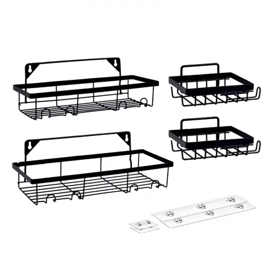 Set 4 rafturi baie, zggzerg, Cu carlige si 2 suporturi pentru sapun, Fara gaurire, Hollow out design, Anti-retinere a apei si crestere bacteriana, pentru baie, spalatorie, baie de odihna, Dimensiuni diferite, NegruSet 4 rafturi baie, zggzerg, Cu carlige si 2 suporturi pentru sapun, Fara gaurire, Hollow out design, Anti-retinere a apei si crestere bacteriana, pentru baie, spalatorie, baie de odihna, Dimensiuni diferite, Negru701891783701891783