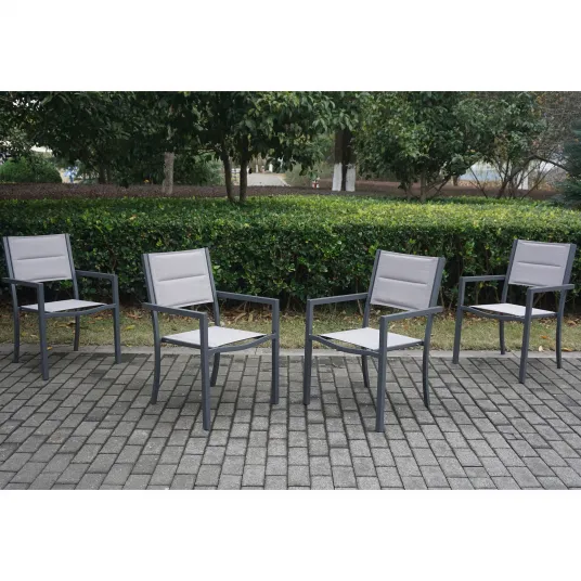 Set 4 Scaune gradina/terasa/balcon Kring Ange metal/textil, 56 x 62 x86 cm, gri