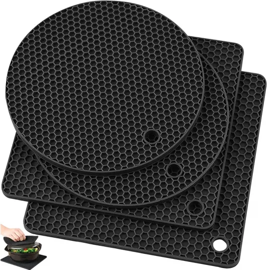 Set 4 suporturi din Silicon, Rqiurpn, pentru o bucatarie eficienta si moderna, Rezistente la Caldura, Suporti Protectie Mese/Blaturi, Manusi Termorezistente Bucatarie, desfacator borcane, Forme Patrat si Rotund, NegruSet 4 suporturi din Silicon, Rqiurpn, pentru o bucatarie eficienta si moderna, Rezistente la Caldura, Suporti Protectie Mese/Blaturi, Manusi Termorezistente Bucatarie, desfacator borcane, Forme Patrat si Rotund, Negru223593494223593494