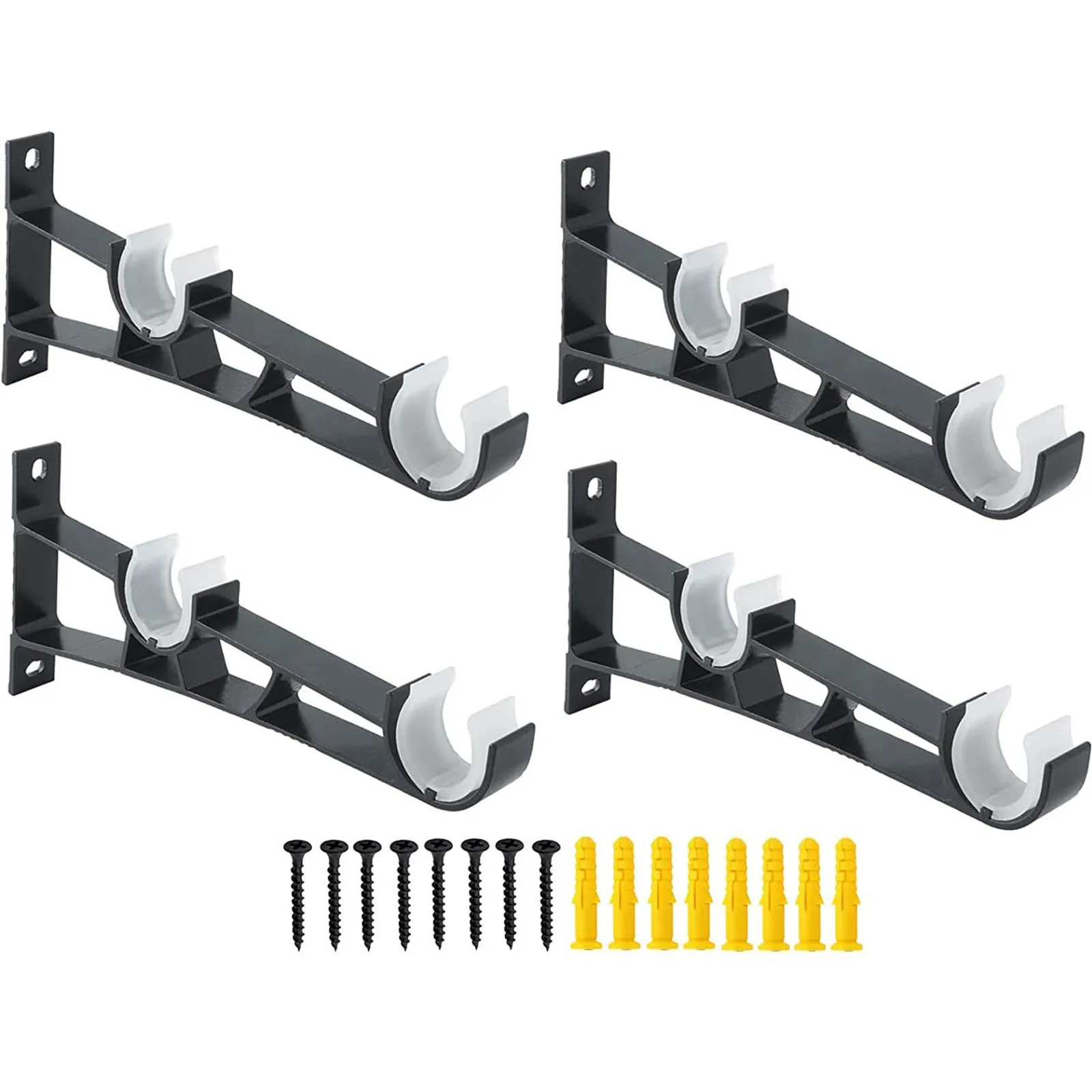 Set 4 suporturi pentru tija de perdea, Axroad Mall, Design cu gauri duble, Greutate suportata 15 kg, Cu suruburi, Prevenirea ruginii, Pentru camera de zi, bucatarie si birou, Aliaj aluminiu/Plastic, 19.5cmx9cm, Negru