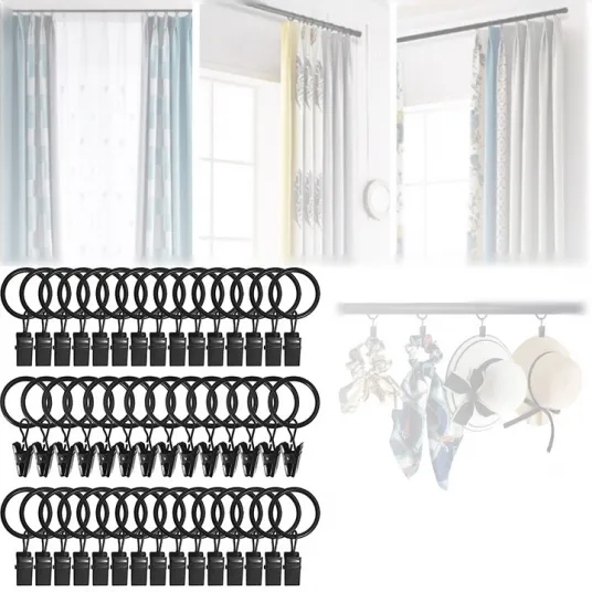 Set 44 inele pentru perdea, Metal, 3.8 cm, Negru
