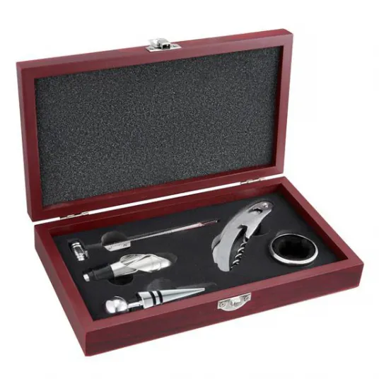Set 5 accesorii pentru vin, Ambition Bolero, in cutie din lemn