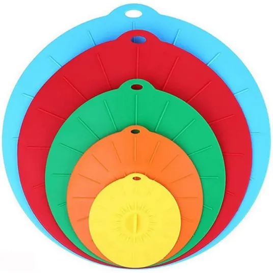 Set 5 capace universale reutilizabile, JENUOS®, cu design de suspensie, Silicon alimentar, pentru boluri, oale, tigai, multicolorSet 5 capace universale reutilizabile, JENUOS®, cu design de suspensie, Silicon alimentar, pentru boluri, oale, tigai, multicolor222759593222759593