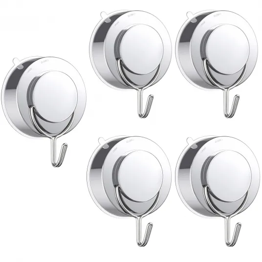Set 5 carlige inox, Cu ventuza HeavyLock performanta, No-drilling, Reutilizabile, Pentru baie sau bucatarie, enkourakoko®, Argintiu