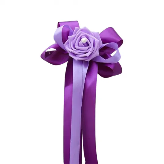 Setul este ideal pentru decorarea masinii, salii de nunta, scaunului, bisericii, primariei si asa mai departe. Este foarte usor de instalat datorita micii sale cravate din satin si este lucrat manual. Dimensiune: aproximativ 17 x 35 cm.