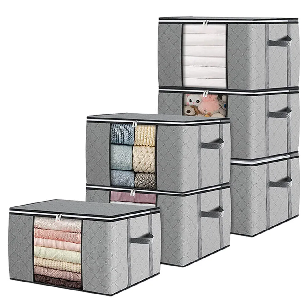 Set 6 huse depozitare cu fermoar, XGETOP®, Pliabile, 60 x 40 x 35 cm, 84L, Gri