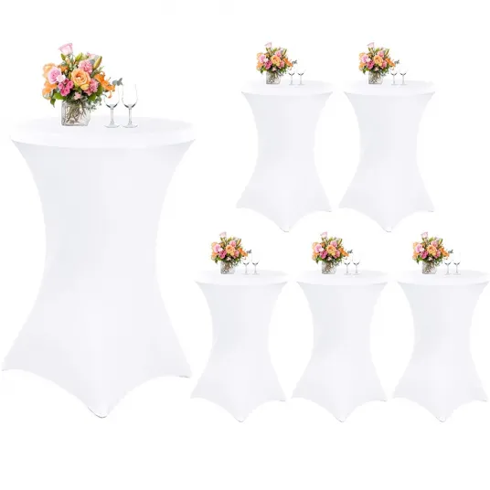 Set 6 huse masa evenimente, Quasar & Co.®, elastice, pentru cocktail, d 75-85 cm, h 110-120 cm, alb