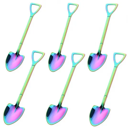 Set 6 linguri Spade pentru cafea, ceai, desert, otel, FreeBiz®, forma de lopata, inox, Multicolor