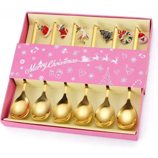 Set 6 Lingurite de Cafea din Otel Inoxidabil cu Pendante de Craciun, Aurii, pentru Servire si DecorareSet 6 Lingurite de Cafea din Otel Inoxidabil cu Pendante de Craciun, Aurii, pentru Servire si Decorare223609888223609888
