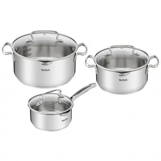 Cu Tefal Duetto Plus Inductie, va puteti rasfata cu o gama larga de tehnici si preparate de gatit. Setul include piese de gatit esentiale care raspund diferitelor nevoi culinare. De la supe si tocane pana la sote si prajire, aceste tigai si oale sunt potrivite pentru toate sarcinile de gatit.Capacele transparente din sticla permit monitorizarea usoara a procesului de gatire fara a ridica capacele.
