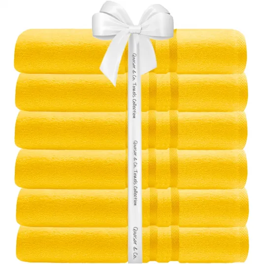 Set 6 prosoape baie Quasar & Co.®, 100% bumbac, 450 g/mp, 70 x 140 cm, galben