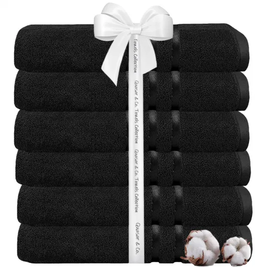 Set 6 prosoape baie Quasar & Co.®, 100% bumbac, 450 g/mp, 70 x 140 cm, negru
