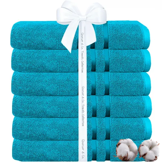 Set 6 prosoape baie Quasar & Co.®, 100% bumbac, 450 g/mp, 70 x 140 cm, turcoaz