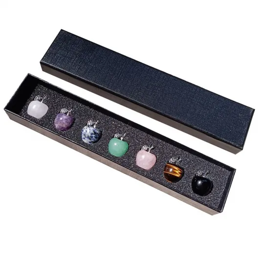 Set 7 mere din cristale vindecatoare si pietre semipretioase, NUODWELL, Marul inseamna pace, siguranta, sanatate si longevitate, Pentru dormitor, birou, casa, bar, cafenea, restaurant, nunta, petrecere, Negru
