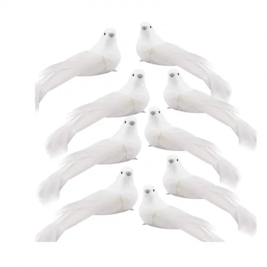 Set 8 buc Accesorii Decorative pentru Pomul de Craciun, Porumbei artificiali, Kaxyrooz, Alb, 13x3x4 cm, spuma/pene