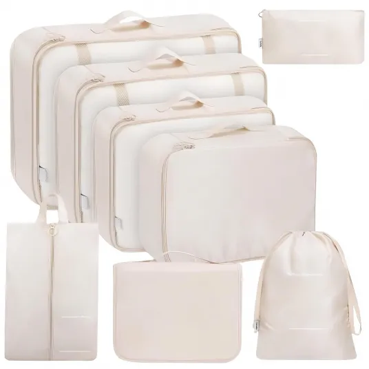 Set 8 organizatoare pentru voiaj, Vaxiuja, fermoare rezistente, Poliester, Rezistent la apa, Bej