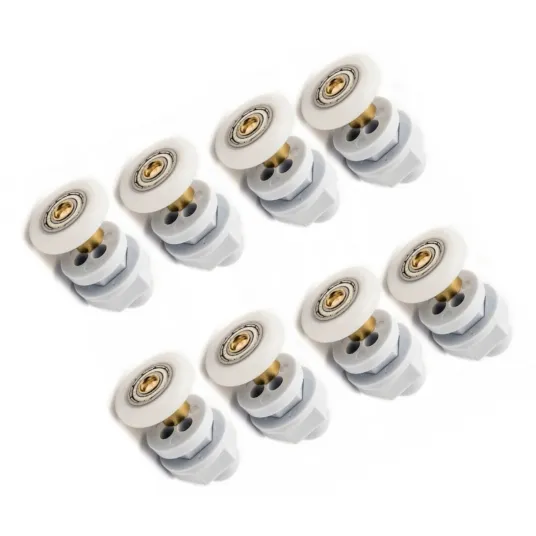 Set 8 role pentru cabina de dus, Robust, durabil, rulment puternic, accesorii pentru roata usii glisante, arc rotund, pentru usa glisanta, Plastic/Alama, Alb