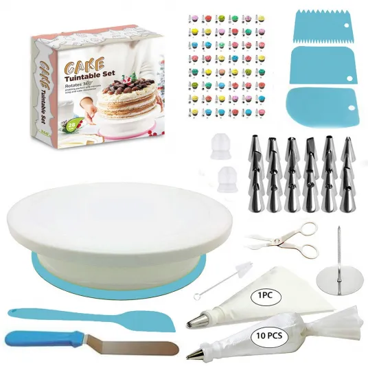 Set Accesorii Ornare Prajituri, SDLOGAL, Platou Rotativ, Duze, Cofetarie/patiserie decorare, Inox/Plastic/Silicon, Multicolor