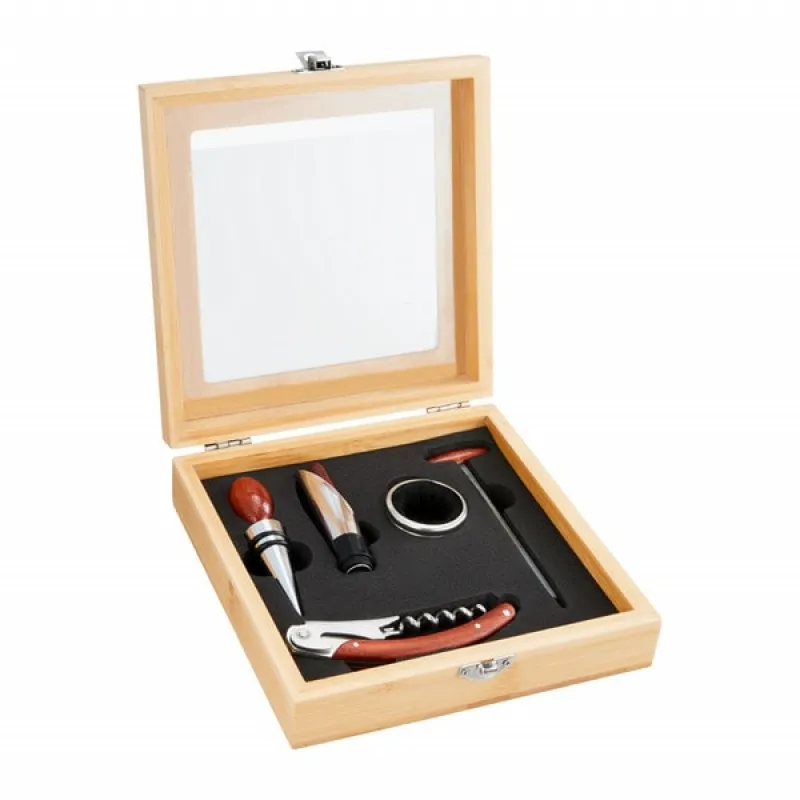 Set accesorii servire vin, 5 piese, cutie bambus, AMBITION Bolero