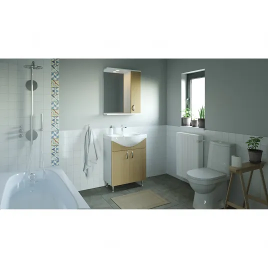 Caracteristici cheieDesign modern,Usor de curatat,Spatiu depozitare,Fabricat in Romania,Lavoar ceramica,Rezistenta la umezeala