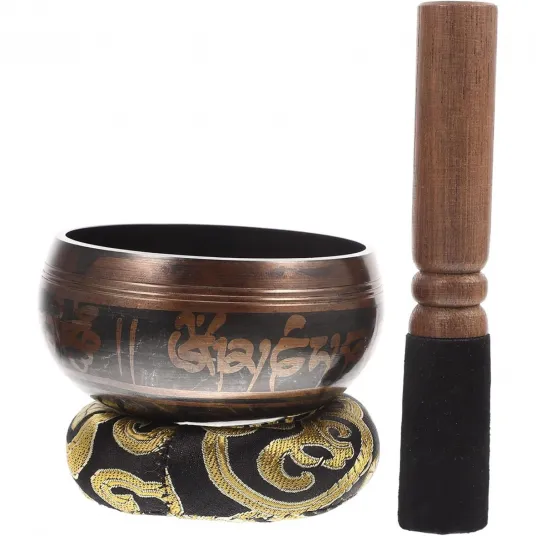 Bol de meditatie lucrat manual de 8 cm x 1, perna de matase cusuta manual x 1, ciocan acoperit cu piele x 1, geanta de depozitare x 1. Un set complet de boluri tibetane pentru meditatie Yoga cu pret decent. Bolul nostru cantator poate incapea in mana ta, portabil si perfect pentru cerintele din mers.