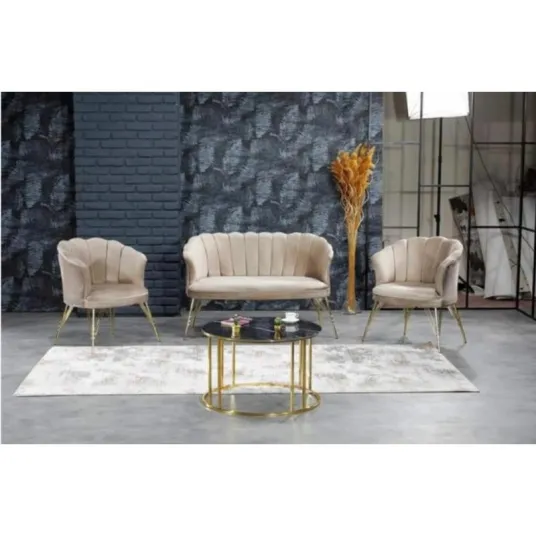Set Canapea cu doua fotolii cafea, Margareta Modela, Cappucino, 130 x 75 x 81 cm
