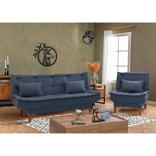 Transformati-va spatiul de locuit cu setul nostru rafinat de canapea-pat in albastru inchis!