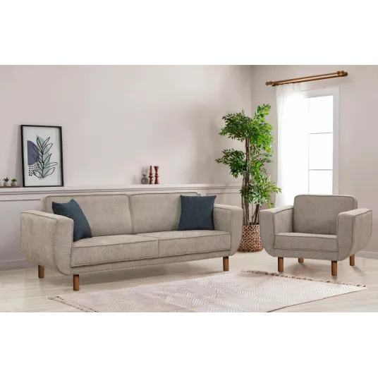 Canapeaua dispune de o spuma moale de 35 dns pentru sustinerea atat a sezutului, cat si a spatelui, asigurand un confort maxim pentru dvs. si oaspetii dvs. Picioarele din lemn adauga o nota de rafinament la designul general, in timp ce tapiteria din tesatura intr-un amestec de poliester si bumbac este atat durabila, cat si usor de curatat.