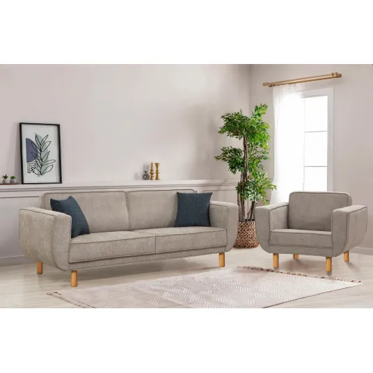 Spuma moale de 35 dns folosita in pernele de sezut si de spatar ofera un echilibru perfect intre suport si confort. Picioarele din lemn adauga o nota de eleganta la designul general. Dimensiunea canapelei este perfecta pentru relaxare sau pentru a gazdui intalniri, in timp ce fotoliul cu aripi adauga un loc confortabil pentru lectura sau relaxare.