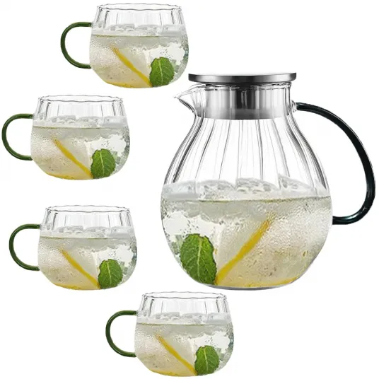 Set ceainic cu 4 cani, Quasar & Co.®, cu filtru, capac, 1600 ml/4x400 ml, sticla borosilicata/otel inoxidabil, transparent