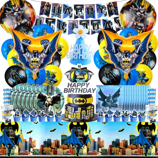Set de 103 decoratiuni pentru, set de baloane Batman, set de vesela Batman, baloane din folie Batman, Batman farfurii, baloane din latex, fata de masa Batman, servetele si cani de petrecere, bannerSet de 103 decoratiuni pentru, set de baloane Batman, set de vesela Batman, baloane din folie Batman, Batman farfurii, baloane din latex, fata de masa Batman, servetele si cani de petrecere, banner223465909223465909