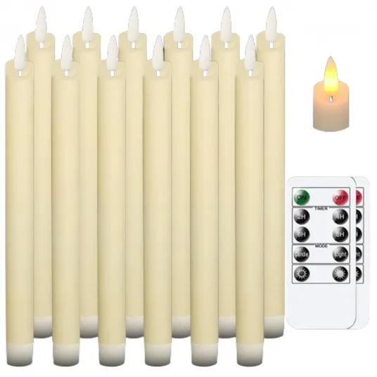 Set de 12 Lumanari LED Elegante, Decorative cu Efect Realistic de Flacara cu Telecomanda, Auto-Timer, Functii Multiple, Perfecte pentru Ambianta si Sarbatori, Ivory