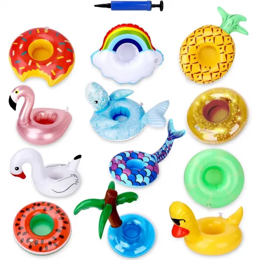 Set de 12 Suporturi pahare Gonflabile, Simply Joy, pentru Bauturi si Piscina, Jucarii de Apa pentru Copii, Plutitoare, Multicolor