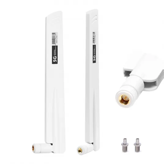 Set de 2 Antena WiFI, JENUOS®, conector, frecventa, 25 cm, 8dBi 2.4GHz 5.8GHz, Cu antene de 5 dBi High-Gain, Semnal puternic si viteza mare, Pentru PC de birou si laptop, Usor de instalat si de utilizat, Alb