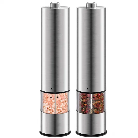 Set de 2 Rasnite Electrice sare si piper, Bukate, Reglaj Macinare, Inox, Argintiu cromat