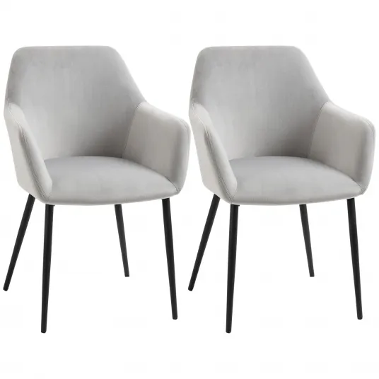 Set de 2 scaune de sufragerie, decorative din material textil din catifea, gri deschisSet de 2 scaune de sufragerie, decorative din material textil din catifea, gri deschis223181345223181345