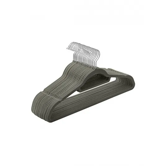 Specificatii: Culoare: Gri Material: Catifea, ABS Plastic, Carlig metalic Dimensiuni: 43.5 x 0.6 x 22.5 cm (L x W x H) Greutatea totala: 1.6 kg Pachetul contine:20 x umerase din catifea