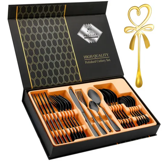 Set de 25 tacamuri din otel inoxidabil, Hggzeg, 6 x Cutit de friptura, 6 x Furculite, 6 x Lingura, 6 x Lingura de ceai, 1 x Lingura de amestecat cafea, 6 persoane, Lustruit in oglinda, Design ergonomic, 28.5x18x7.8cm, NegruSet de 25 tacamuri din otel inoxidabil, Hggzeg, 6 x Cutit de friptura, 6 x Furculite, 6 x Lingura, 6 x Lingura de ceai, 1 x Lingura de amestecat cafea, 6 persoane, Lustruit in oglinda, Design ergonomic, 28.5x18x7.8cm, Negru223594051223594051