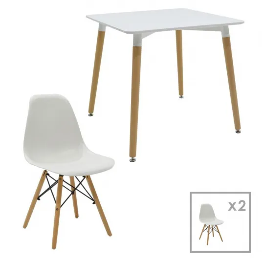 Setul include o masa si doua scaune, toate realizate din materiale de calitate superioara. Masa Natali, cu un design elegant, are o suprafata din MDF de 80x80 cm si o inaltime de 76 cm, oferind un loc generos pentru mese cu prietenii sau pentru studiu. Scaunele Julita sunt confectionate din plastic PP, fiind usor de intretinut si foarte confortabile.