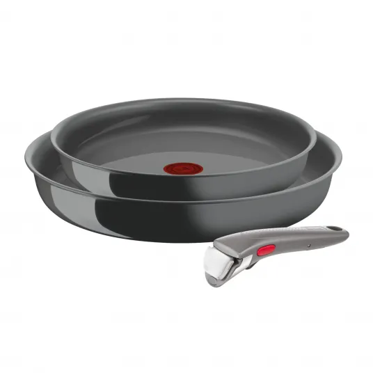 Set de 3 piese Tefal Ingenio Renew, tigaie de 24/28 cm, maner detasabil, invelis antiaderent, indicator Thermo-Signal™, gri