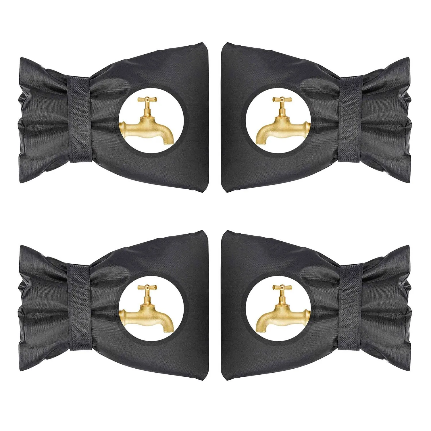 Set de 4 protectii anti inghet pentru robinet, Vaxiuja, 14/20cm, Universal, Usor de instalat, Impermeabil, Material Poliester/Bumbac, Negru