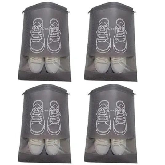 Set de 4 Sac depozitare incaltaminte, JENUOS®, pentru voiaj sau depozitare, rezistent la praf, 44 x 32 cm, Gri
