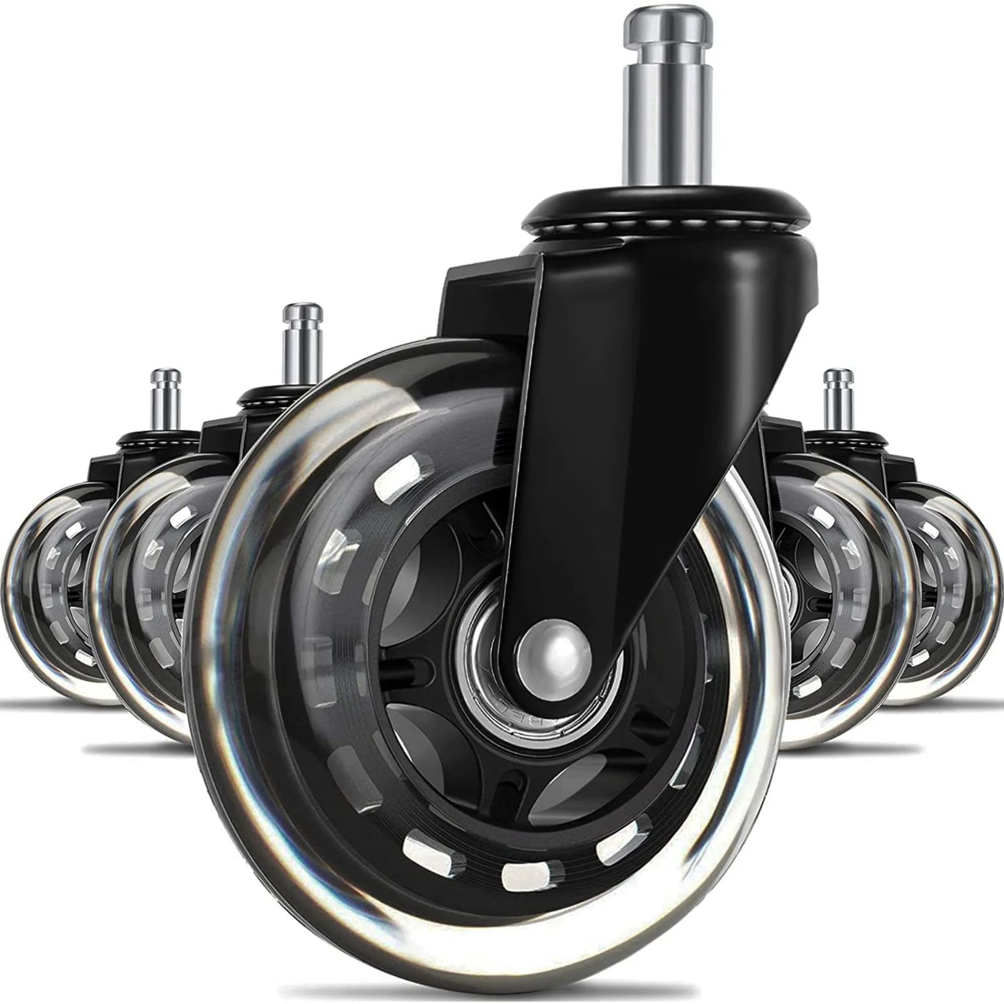 Set de 5 roti de silicon profesional ARKA RX900T, 2,5 inch transparant, tija 11mm pentru scaun de gaming/birou