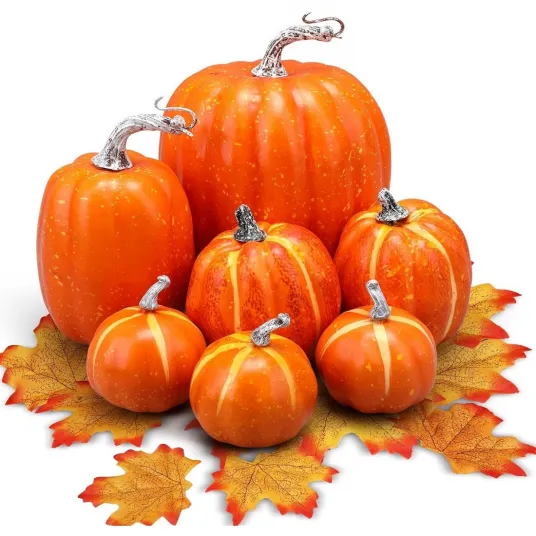 Set de 7 dovleci artificiali de Halloween, din polistiren/plastic, cu 30 de frunze de artar, portocaliu, carrlinechoo®