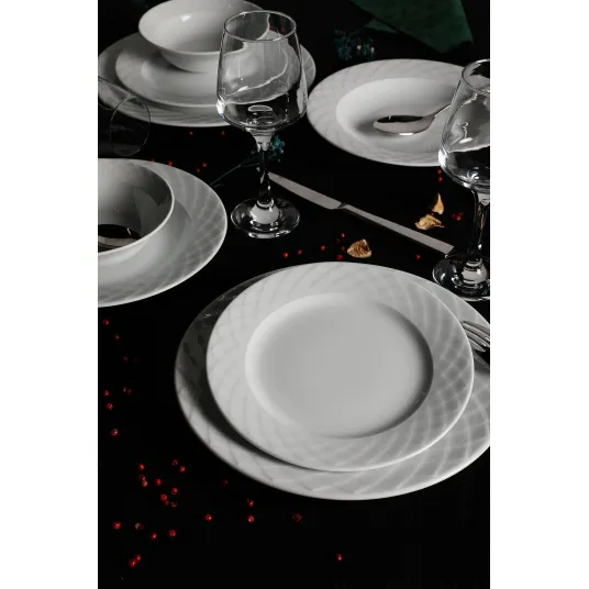 Fie ca gazduiti o cina formala sau va bucurati de o masa casual cu familia, setul nostru de cina este partenerul perfect. Designul sau atemporal si culoarea alba clasica vor completa fara efort orice aranjament de masa, creand o atmosfera calda si primitoare pentru oaspetii dvs.